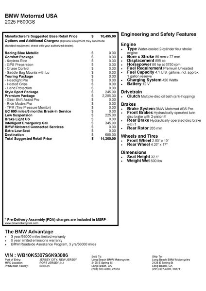 New 2025 BMW F 800 GS in Long Beach, CA