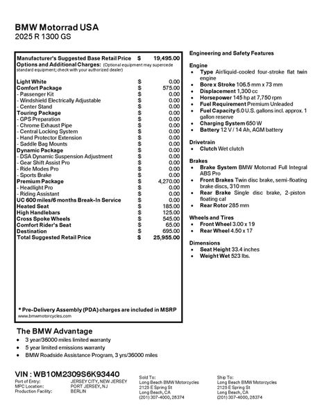 New 2025 BMW R 1300 GS in Long Beach, CA