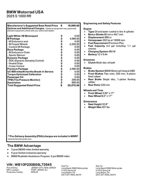 New 2025 BMW S 1000 RR in Long Beach, CA