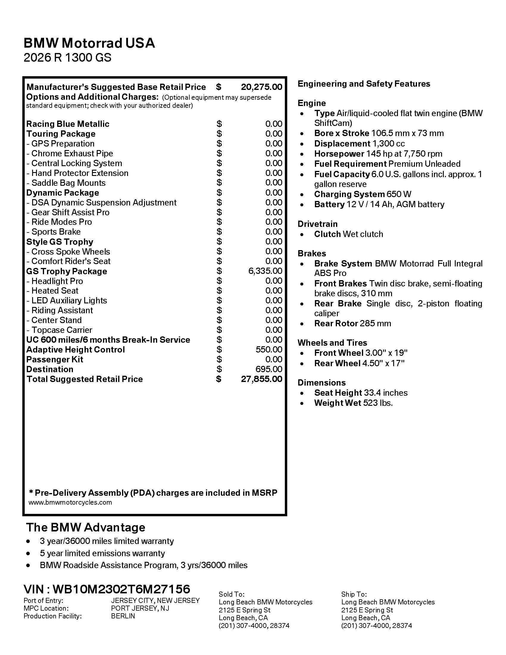 New 2026 BMW R 1300 GS in Long Beach, CA