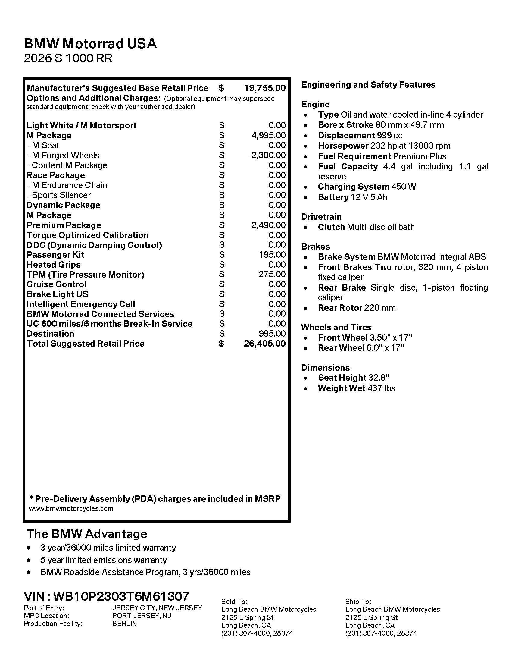 Challenge your limits Image of the BMW S 1000 RR superbike on the racetrack Precisely tuned for performance: the RR. Here, success is measured in millimeters. That’s why the superbike has undergone ongoing development: from the new, more aerodynamic trim panels with winglets, to the front wheel mudguard with M Brake Ducts, right up to performance-oriented details, such as the quick action throttle that reduces the throttle path by 12 degrees. With the Pro riding mode, you will now have a handle on all situations as standard. The goal is, was, and always will be clear: new pole positions – #NeverStopChallenging.